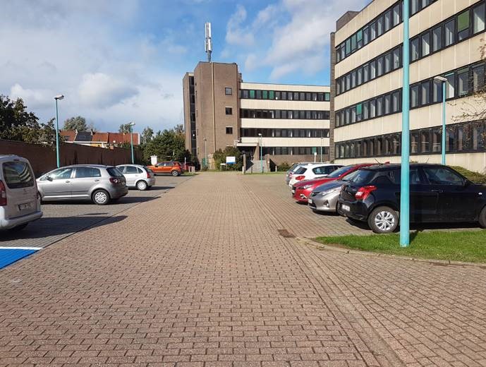 De politierechtbank van Halle heeft een ruime parking.